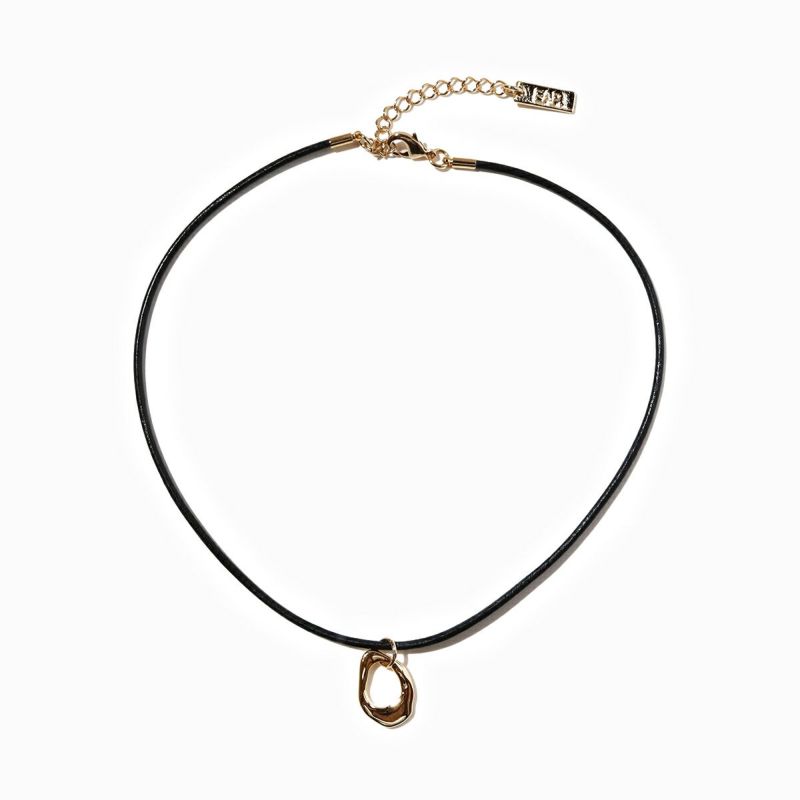 レザーチョーカーがセットになった別々でも重ね着けでも楽しめる3wayネックレス。