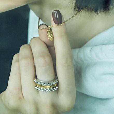 他のリングと重ね着けすることでよりボリューム感のある今年らしい手元に。