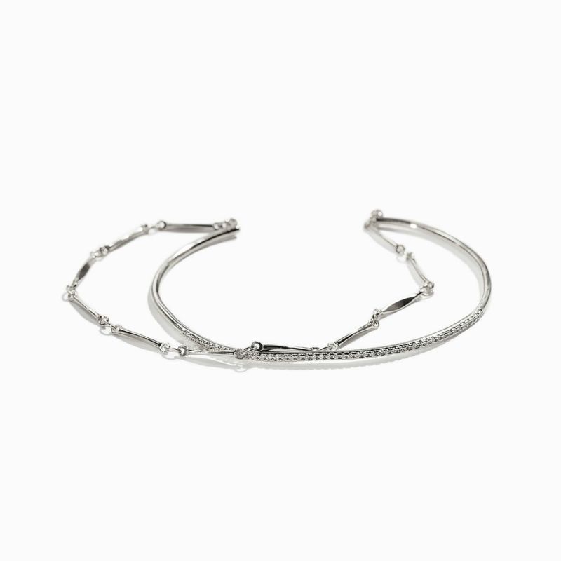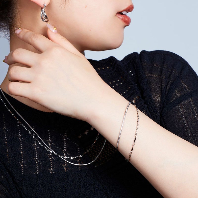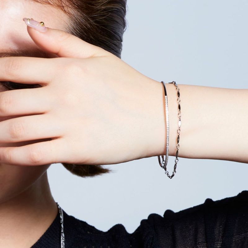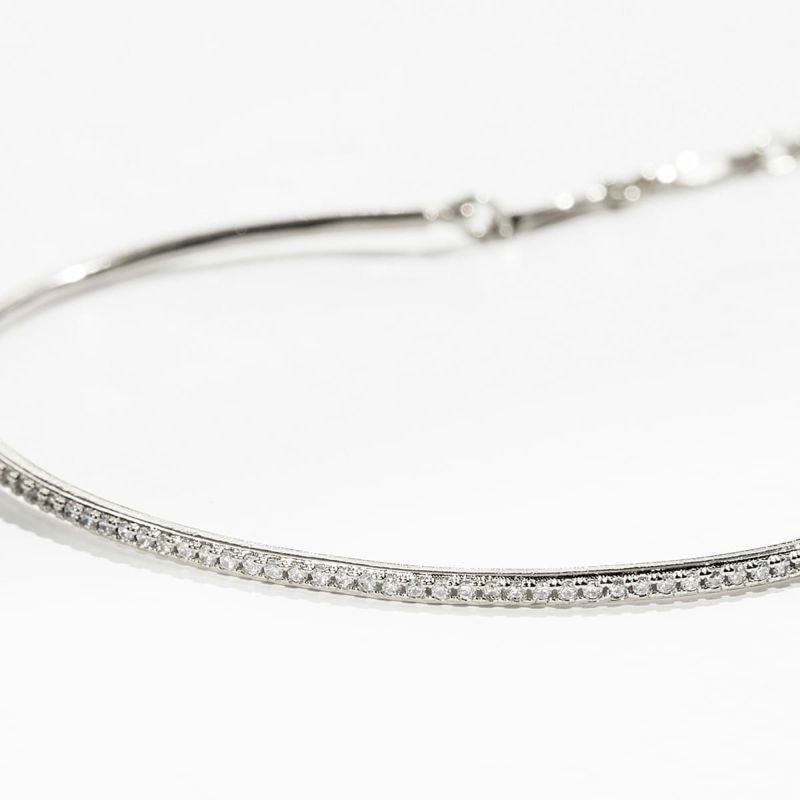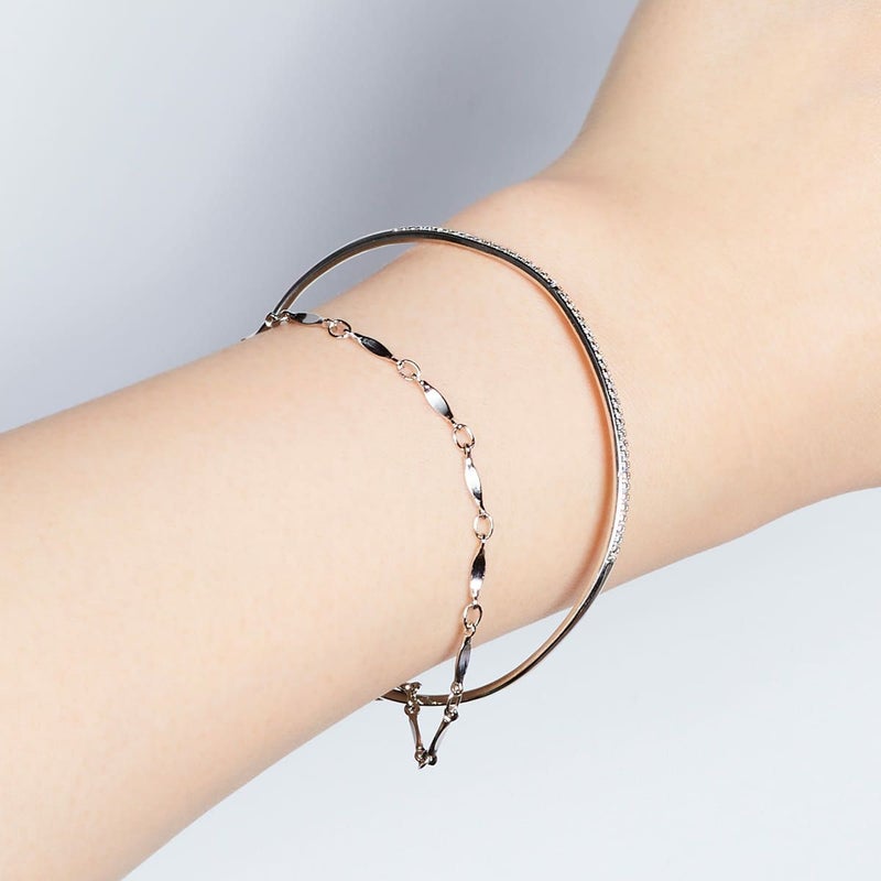 バングルのラインにはビジューをセッティングし、素肌の上でさりげなく輝く仕上がりに。