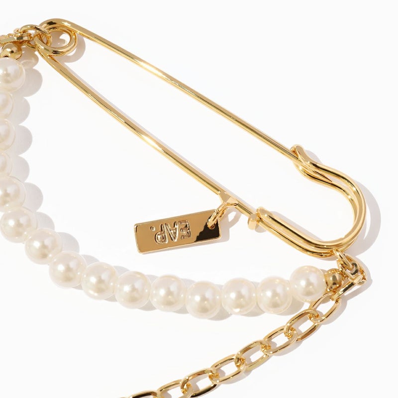 力強いチェーンと優美なパールの調和は、ジェンダーレスでありながらも、