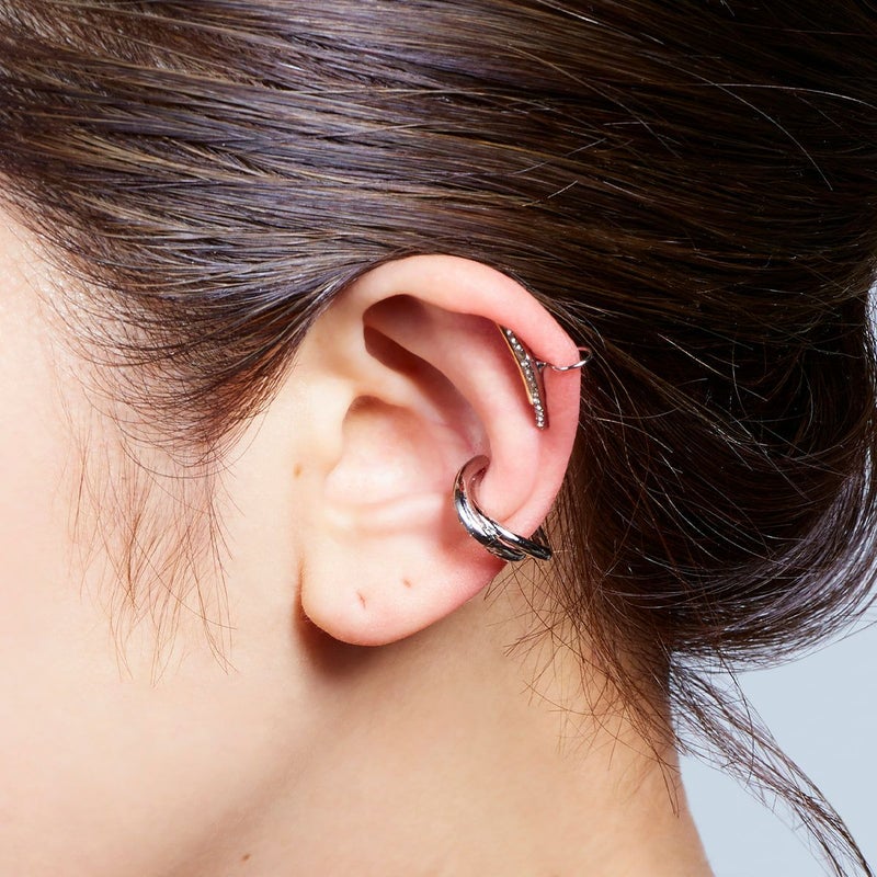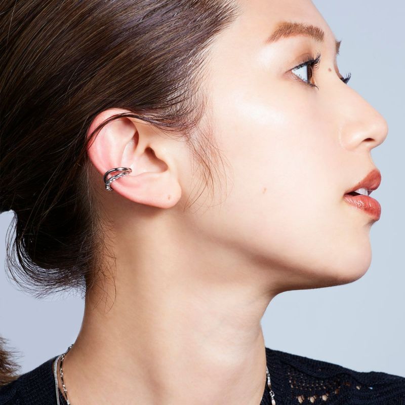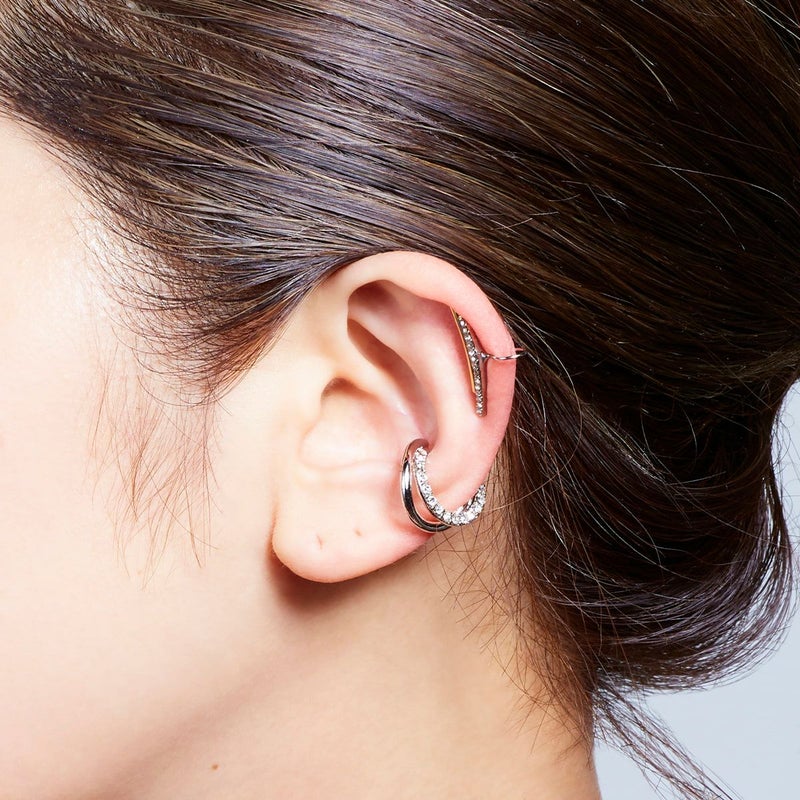 他のイヤリングやイヤークリップとのレイヤードスタイルで