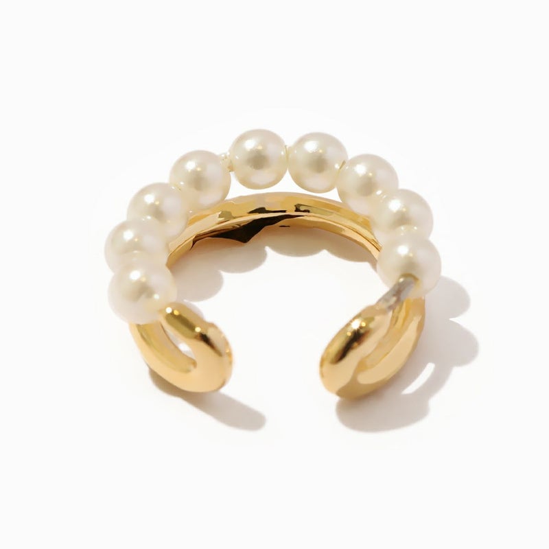 パールと地金のダブルラインが上品な印象のイヤーカフ。