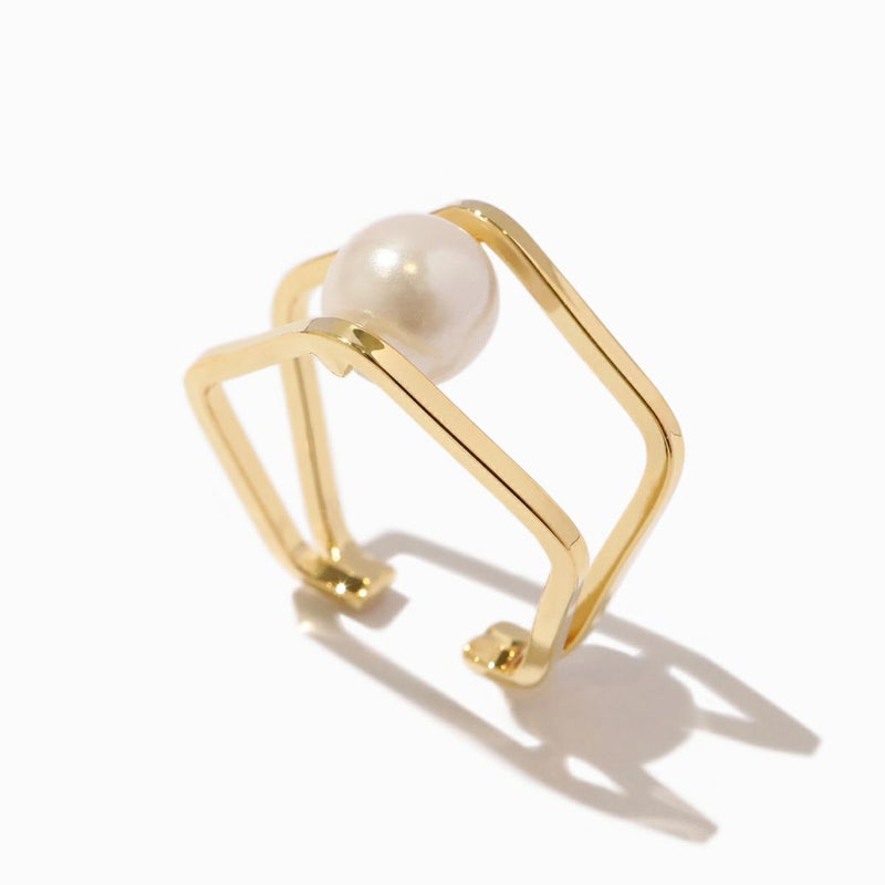 Pearl-Mixed Pentagon Ear Cuff(GOLD)