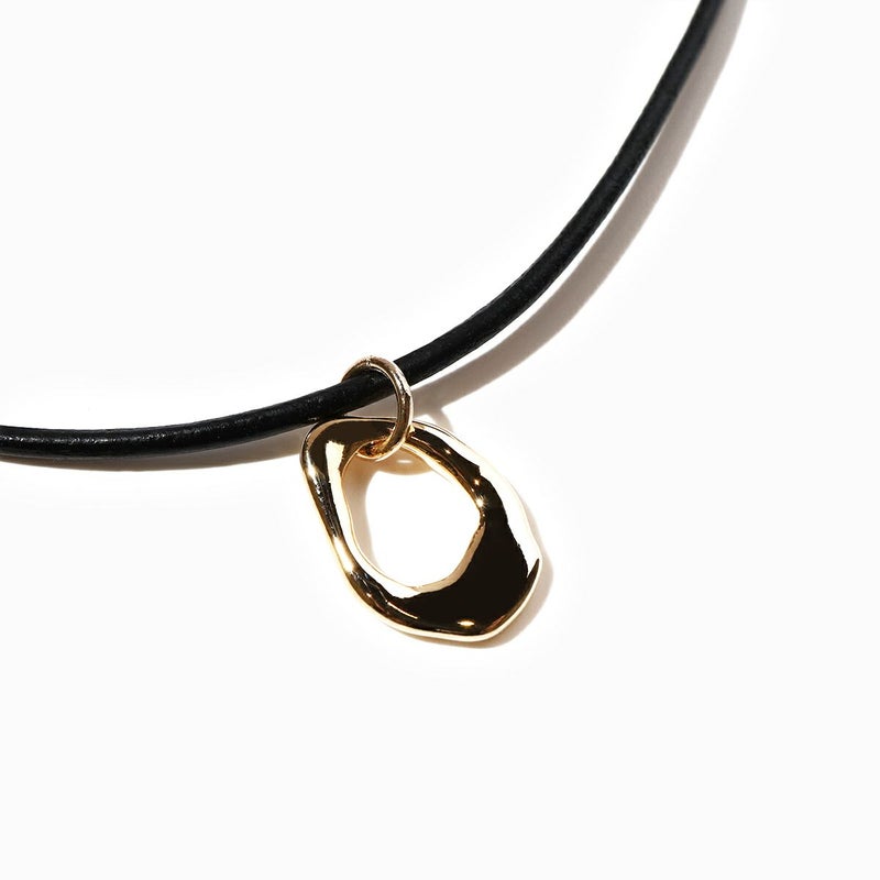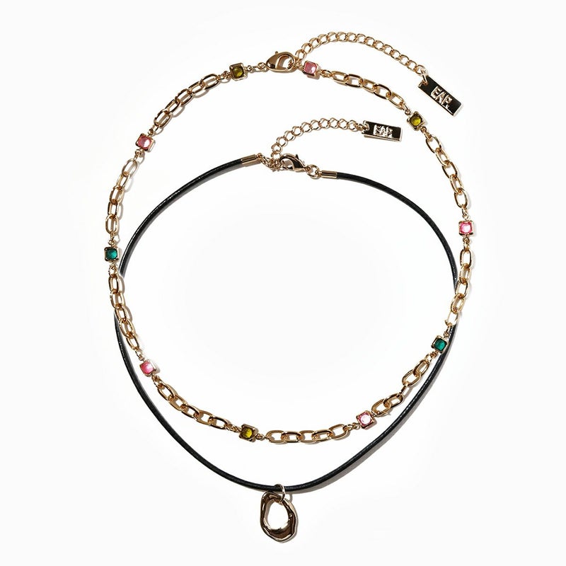 レザーチョーカーがセットになった別々でも重ね着けでも楽しめる3wayネックレス。