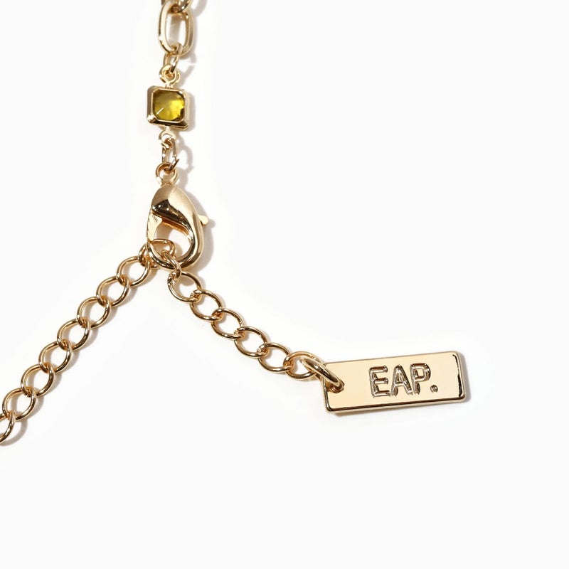カラーストーンが煌めく華奢なチェーンネックレスと