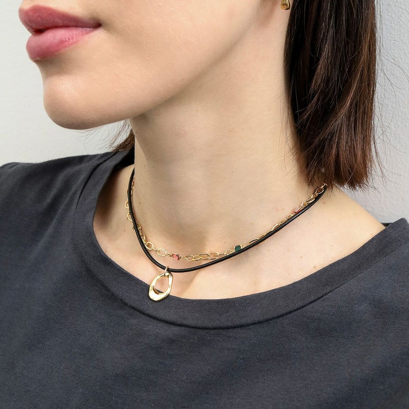Color Stone × Leather 3 Way Necklace(GOLD)