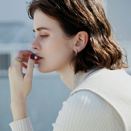 他のリングと重ね着けすることでよりボリューム感のある今年らしい手元に。