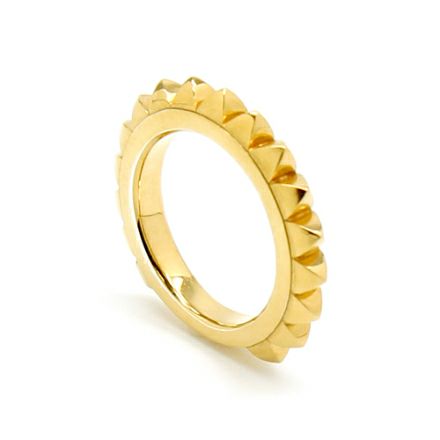 ごつくなりがちなスタッズをひとつひとつスタッズの山を曲線にすることで繊細さをプラス。